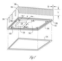 Technical Solution: Continental has pioneered phase-change material (PCM) enhanced heat sink technology for automotive electronics, particularly for power modules in hybrid and electric vehicles. Their solution combines traditional aluminum heat sinks with strategically embedded PCM pockets that absorb thermal energy during peak loads and release it during lower demand periods. This approach effectively dampens thermal cycling, which is critical for extending component lifespan in automotive applications. Continental's designs feature optimized fin geometries with variable spacing and heights based on computational thermal analysis, achieving thermal resistance values as low as 0.2°C/W for high-power applications. The company has also developed specialized surface treatments that increase the effective heat transfer area by up to 40% through micro-texturing processes, while maintaining manufacturability at automotive production volumes.