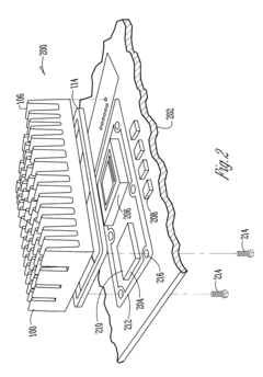 - Thermal interface optimization: The interface between heat sources and heat sinks significantly affects overall thermal performance. Optimizing this interface involves selecting appropriate thermal interface materials (TIMs) such as thermal greases, pads, or phase-change materials. Surface preparation techniques like polishing or micro-texturing can reduce thermal contact resistance. Some designs incorporate direct bonding or soldering to eliminate interface resistance. Pressure application methods and mounting techniques are also critical for maintaining consistent thermal contact over the device lifetime.