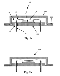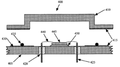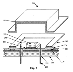 Technical Solution: Battelle has developed advanced hermetic sealing techniques specifically for CSACs using a multi-layered approach that combines ceramic-to-metal seals with specialized glass frits. Their solution incorporates a proprietary getter material within the sealed cavity to absorb residual gases and moisture that could degrade the atomic clock's performance. The technique employs precision laser welding to create vacuum-tight seals with leak rates below 1×10^-9 atm-cc/sec helium. Battelle's approach also features a unique stress-compensation design that minimizes thermal expansion mismatch between different materials, allowing the hermetic package to maintain integrity across wide temperature ranges (-55°C to +125°C) while protecting the sensitive atomic resonance cell from environmental contaminants that would otherwise limit operational lifetime.