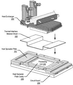 Dynamic thermal management techniques involve real-time monitoring and control of temperature distributions across heterogeneously integrated systems. These approaches include workload migration, frequency scaling, and power gating to distribute heat generation temporally and spatially. Hot-spot sharing strategies deliberately distribute computational loads across multiple processing elements to prevent localized overheating, using thermal-aware task scheduling algorithms and adaptive power management to maintain optimal thermal profiles.Expand Specific Solutions05 Novel Materials and Structures for Thermal Conductivity Enhancement