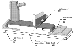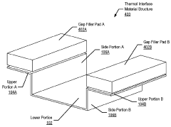 Technical Solution: IBM has pioneered heterogeneous integration thermal management through their "Power Flow" architecture that addresses hot-spot sharing challenges in high-performance computing systems. Their approach utilizes a hierarchical cooling strategy with specialized TIMs at different interface levels. For critical thermal interfaces, IBM employs metal-based TIMs with thermal conductivities exceeding 80 W/mK, significantly outperforming conventional materials. The cornerstone of IBM's thermal solution is their advanced microfluidic cooling technology featuring 3D-printed microchannels that conform to chip topography. Their "Interlayer Cooling" approach places cooling channels between stacked silicon layers, allowing direct cooling of each tier in 3D integrated circuits. IBM has demonstrated cooling capabilities exceeding 350 W/cm² using single-phase water cooling and up to 600 W/cm² with two-phase refrigerants in their laboratory prototypes. This technology has been implemented in their most advanced supercomputing systems, including components of the Summit supercomputer.