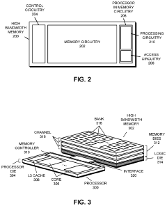 - Memory bandwidth optimization techniques for in-memory processors: Various techniques can be employed to optimize memory bandwidth in HBM-equipped in-memory computing systems. These include advanced memory controllers that efficiently manage data flow, intelligent prefetching algorithms that anticipate data needs, and memory access coalescing that combines multiple memory requests. Additionally, specialized memory addressing schemes and data compression techniques can be implemented to maximize effective bandwidth utilization while minimizing power consumption.