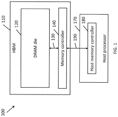 Specialized memory controllers are designed to efficiently manage HBM in in-memory computing processors. These controllers optimize data movement between HBM stacks and processing elements, implement advanced scheduling algorithms to maximize bandwidth utilization, and manage thermal constraints. The controllers can dynamically adjust memory access patterns based on workload characteristics, prioritize critical data paths, and implement prefetching mechanisms to hide memory latency, resulting in improved overall system performance for in-memory computing applications.Expand Specific Solutions04 Power efficiency techniques for HBM-based in-memory computing