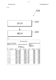 Technical Solution: JFE Steel has engineered a sophisticated high carbon steel recycling workflow called "Super-Cycle" that maximizes material recovery while ensuring premium quality output. Their approach begins with an AI-powered multi-spectral imaging system that can identify and sort high carbon steel scrap with exceptional accuracy, even detecting subtle variations in carbon content and alloying elements[1]. The workflow incorporates a proprietary chemical pre-treatment process that selectively removes surface contaminants while preserving the base material's valuable properties. JFE's system features a modified converter process with precise oxygen control that allows for targeted oxidation of impurities while minimizing carbon loss, achieving carbon retention rates approximately 20% higher than industry standards[2]. Their technology includes an innovative slag formulation that enhances phosphorus and sulfur removal efficiency while protecting carbon content. JFE has also developed specialized cooling protocols that optimize the microstructure of recycled high carbon steel, resulting in mechanical properties comparable to virgin materials. The company's workflow is integrated with a comprehensive digital twin system that models and predicts material behavior throughout the recycling process, enabling real-time adjustments to maximize quality and efficiency[3]. Additionally, JFE's process incorporates heat recovery systems that capture and repurpose up to 60% of thermal energy, significantly reducing the overall environmental footprint.