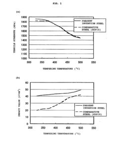 Technical Solution: NIPPON STEEL has developed proprietary high carbon steel compositions specifically engineered for spring applications, featuring carefully controlled silicon (1.8-2.2%) and manganese (0.6-0.8%) content to enhance elastic properties. Their manufacturing process includes vacuum degassing technology that reduces hydrogen content to below 2ppm, minimizing the risk of hydrogen embrittlement in high-stress applications. The company employs controlled cooling rates during quenching (150-200°C/s) to achieve optimal martensite formation without excessive internal stresses. Their high carbon spring steels undergo multi-stage tempering processes to achieve uniform microstructure throughout the cross-section, critical for consistent performance in heavy-duty applications. NIPPON STEEL's case studies demonstrate their springs achieving over 10 million cycles in fatigue testing under loads of 1200-1500 MPa.