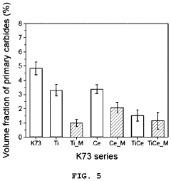Innovative alloying elements and manufacturing processes are being developed to create high carbon and tool steels for specialized cutting applications. These include powder metallurgy techniques, additive manufacturing, and the incorporation of rare earth elements or nano-additives. Such approaches allow for more precise control of material properties, enabling the creation of cutting tools with exceptional hardness-to-toughness ratios, thermal stability, and wear resistance. These advanced materials excel in challenging applications such as high-speed machining, dry cutting, and processing of difficult-to-machine materials.Expand Specific Solutions