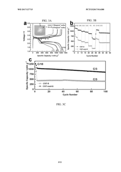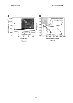 Strengths: Industry-leading cycle stability with high sulfur loading; established manufacturing infrastructure allows for potential commercialization at scale; comprehensive approach addressing both cathode and anode issues. Weaknesses: Higher production costs compared to conventional lithium-ion batteries; energy density improvements still needed to reach theoretical potential; temperature sensitivity remains a challenge for wide application scenarios.