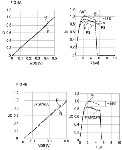 - SiC MOSFET reliability and performance enhancement: Improving the reliability and performance of SiC MOSFETs involves addressing challenges such as threshold voltage instability, channel mobility limitations, and oxide interface quality. Various techniques are employed to enhance these aspects, including specialized surface treatments, novel dielectric materials, and optimized device geometries. Research focuses on reducing on-resistance, improving thermal management, and extending device lifetime under harsh operating conditions. These enhancements enable SiC MOSFETs to operate more efficiently in high-temperature and high-frequency applications.