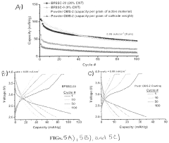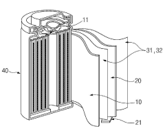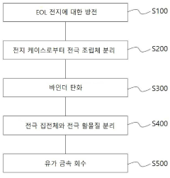 Technical Solution:  Samsung SDI has pioneered a binder-free electrode technology utilizing carbon nanotube (CNT) networks as self-supporting conductive frameworks. Their approach involves creating interwoven CNT scaffolds through vacuum filtration or electrophoretic deposition, followed by direct integration of active materials through electrodeposition or solution impregnation. This creates mechanically robust electrodes without polymer binders. Samsung's technology enables direct recycling pathways where the electrode materials can be separated through simple mechanical or thermal treatments without chemical leaching steps typically required for binder removal. Their research demonstrates recovery rates exceeding 90% for critical materials like nickel, cobalt, and lithium[2]. The company has also developed specialized thermal treatment protocols operating at precisely controlled temperatures that selectively remove the active materials while preserving the CNT network, allowing for potential reuse of the conductive framework in subsequent battery manufacturing cycles.