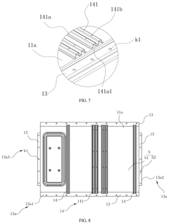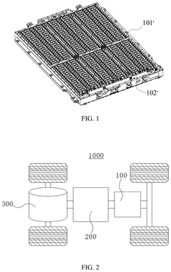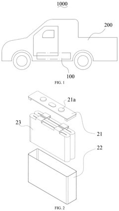 Blade batteries employ a unique structural design to enhance safety. This includes optimized cell arrangement, improved heat dissipation mechanisms, and reinforced casing materials. The design aims to prevent thermal runaway and minimize the risk of fire or explosion in case of damage or malfunction.- Battery cell structure and design: Blade batteries incorporate innovative structural designs to enhance safety. This includes optimized cell arrangements, improved casing materials, and reinforced internal components. These design elements help prevent short circuits, manage thermal runaway, and increase overall structural integrity.