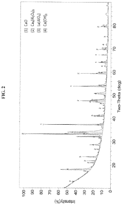 Strengths: Materials designed specifically for industrial-scale implementation; focus on practical aspects like mechanical stability and regeneration efficiency; extensive testing under realistic conditions. Weaknesses: Some materials show performance degradation in the presence of SOx and NOx contaminants; higher temperature sorbents may face challenges with thermal management; regeneration energy requirements still present economic barriers.