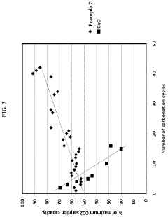 - Regeneration and cyclic performance of CO2 sorbents: The regeneration capability and cyclic stability of solid sorbents are critical factors for practical CO2 capture applications. Various regeneration methods, including temperature swing adsorption (TSA), pressure swing adsorption (PSA), and vacuum swing adsorption (VSA), can be employed depending on the sorbent properties. Advanced sorbent materials are designed to maintain high CO2 capture capacity over multiple adsorption-desorption cycles while minimizing energy requirements for regeneration. Innovations in regeneration processes and sorbent stability significantly impact the overall efficiency and economic viability of carbon capture technologies.