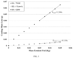 Standardized performance metrics across these case studies typically include thermal cycling resistance (measured by cycles to failure), thermal shock resistance (temperature differential without coating failure), erosion resistance (material loss per unit time under standardized conditions), and mechanical adhesion strength (measured in MPa). Additional metrics include hardness retention at elevated temperatures, thermal conductivity degradation rates, and coefficient of thermal expansion compatibility with substrate materials.