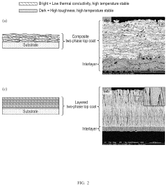 The primary technical objectives in composite coating development center on achieving optimal combinations of thermal stability and mechanical durability. Thermal stability encompasses resistance to degradation at elevated temperatures, maintenance of structural integrity during thermal cycling, and effective thermal barrier properties. Mechanical durability objectives include enhanced wear resistance, improved hardness without brittleness, superior adhesion to substrates, and resistance to mechanical fatigue.