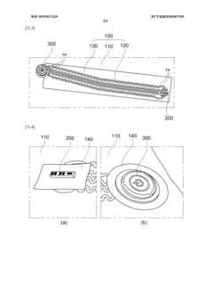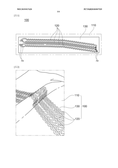 Technical Solution: AiQ Smart Clothing has pioneered a proprietary conductive adhesive system called "SoftTex" that enables the integration of electronic components directly into fabric structures. Their technology utilizes a combination of conductive polymers and specialized adhesives that maintain electrical connectivity while preserving the textile's natural properties. The SoftTex system creates interconnections between conductive yarns and conventional electronic components through a patented low-temperature bonding process that doesn't damage delicate fabrics. AiQ's approach allows for the creation of textile circuits with resistance stability across thousands of flex cycles, making it suitable for garments that undergo regular movement and washing. Their technology has been implemented in commercial products including heated garments, biometric monitoring clothing, and EMI-shielding textiles. The company has developed specialized application techniques that can be integrated into existing textile manufacturing lines, enabling scalable production of smart fabrics.