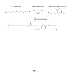 - A new biodegradable polymer, poly(octamethylene maleate (anhydride) 1,2,4-butanetricarboxylate), capable of UV-cross-linking, is developed through a polycondensation reaction involving 1,8-octanediol, 1,2,4-butanetricarboxylic acid, and maleic anhydride, featuring a dual-crosslinking mechanism for improved mechanical properties and degradability.