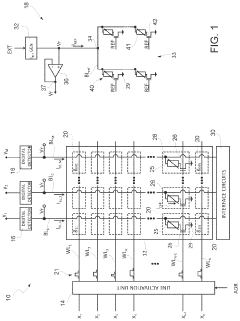 Technical Solution: Micron has developed advanced in-memory computing architectures that address device variability through adaptive calibration techniques. Their approach utilizes a combination of hardware and software solutions to mitigate the impact of device-to-device variations in resistive memory arrays. Micron's technology implements real-time monitoring systems that continuously measure device characteristics during operation and apply compensation algorithms to maintain computational accuracy. Their 3D XPoint technology incorporates specialized circuitry that can detect and adjust for resistance drift in memory cells, which is a primary source of computational errors in in-memory operations. Additionally, Micron has pioneered temperature-aware computing models that dynamically adjust operational parameters based on thermal conditions to maintain consistent performance across varying environmental conditions. The company has also developed innovative error correction codes specifically designed for in-memory computing that can detect and correct errors resulting from device variability without significant performance overhead.
