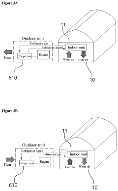 Technical Solution: Toshiba Corporation has developed a cutting-edge regenerative cooling system that utilizes dimethyl ether (DME) in conjunction with advanced heat pump technology. Their system employs a cascaded heat pump design where DME is used in the low-temperature cycle, taking advantage of its low boiling point and high volumetric cooling capacity. The high-temperature cycle uses a more conventional refrigerant, creating a highly efficient two-stage cooling process. Toshiba's innovation lies in their proprietary compressor design, which is optimized for DME's thermodynamic properties, allowing for higher compression ratios and improved overall system efficiency[10]. The company's research has shown that this DME-based cascaded system can achieve a coefficient of performance (COP) up to 30% higher than single-stage systems using conventional refrigerants[11]. Additionally, Toshiba has implemented advanced control algorithms that dynamically adjust the system's operation based on cooling load and ambient conditions, further enhancing efficiency and reliability.