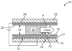 Three-dimensional electrode structures provide enhanced functionality in microfluidic chips by enabling control of electric fields in multiple spatial dimensions. These configurations can include vertical electrodes, stacked electrode layers, or electrodes embedded at different depths within the microfluidic channels. 3D electrode arrangements allow for more complex manipulation of particles and fluids, improving separation efficiency, detection sensitivity, and enabling advanced applications such as 3D cell culture and tissue engineering within microfluidic environments.Expand Specific Solutions03 Electrode configurations for dielectrophoresis applications