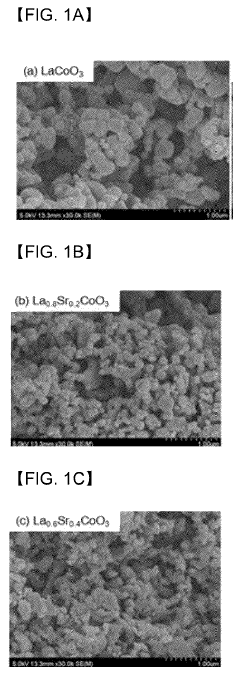 - A perovskite-based oxidation catalyst with the chemical formula La1-xSrxCoO3-y is developed using a co-precipitation method at lower temperatures, achieving uniform particle size distribution and a large surface area, and incorporating oxygen vacancies to enhance catalytic activity and conductivity.