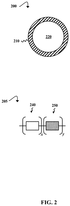Self-healing polymers with embedded vascular networks can deliver healing agents to damaged areas continuously. These systems mimic biological vascular structures, allowing for multiple healing cycles and addressing larger damage areas than microcapsule-based systems. The vascular networks can be designed with various architectures to optimize healing agent delivery and ensure effective leak-tightness in applications such as pipelines, containers, and protective coatings.Expand Specific Solutions03 Intrinsic self-healing polymers for dynamic leak sealing
