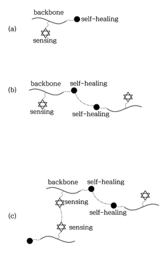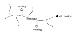 - A luminescent self-healing supramolecular network is formed by introducing a sensing material and a self-healing material on a polymer backbone, enabling detection and healing of microscopic damages through a stimulus-response system using dynamic coupling and luminescence.