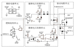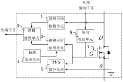- A fast adaptive short-circuit protection circuit including a drain voltage detection unit, a gate voltage detection unit, a logic processing unit, an auxiliary power supply unit and a TVS protection unit is designed. By detecting the drain-source and gate-source voltages of SiC MOSFET, Automatically determine short circuit status, eliminating blanking time and improving short circuit detection speed.