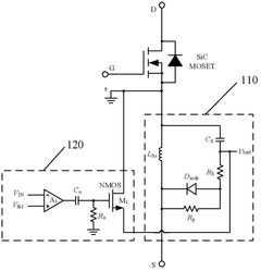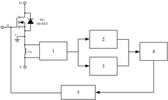 Protection circuits designed specifically for SiC MOSFETs to detect and respond to short-circuit conditions. These circuits typically monitor current levels or voltage drops across the device and can quickly shut down the MOSFET when a short-circuit is detected, preventing device failure. The protection mechanisms often include fast response times to account for SiC MOSFETs' lower short-circuit withstand capability compared to silicon devices.- Detection and protection circuits for SiC MOSFETs: Various detection and protection circuits are designed specifically for SiC MOSFETs to handle short-circuit conditions. These circuits can quickly detect abnormal current or voltage levels and implement protective measures to prevent device failure. The protection mechanisms may include gate voltage control, current limiting, or device shutdown to mitigate the effects of short-circuit events and extend the safe operating area of SiC MOSFETs.