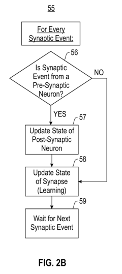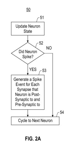Technical Solution: IBM has developed neuromorphic computing systems that explicitly model synaptic delays for temporal computation. Their TrueNorth architecture incorporates programmable synaptic delays that enable precise spike timing for temporal pattern recognition. IBM researchers have demonstrated that by carefully controlling these delays, neural networks can perform complex temporal tasks such as speech recognition and motion detection with significantly improved efficiency. Their approach uses a time-multiplexed digital design where synaptic delays are implemented as configurable buffer circuits that hold spike information for specific time periods[1]. This allows neurons to integrate information across different time scales, mimicking the temporal processing capabilities of biological neural systems. IBM has further enhanced this with their more recent Brain-Inspired Computing Systems that implement variable synaptic delays to enable temporal coding schemes where information is encoded in the precise timing relationships between spikes rather than just firing rates[3].