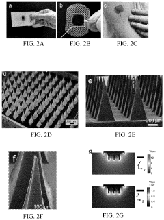 - Microneedle arrays for transdermal drug delivery: Microinjection molding is employed to manufacture microneedle arrays for transdermal drug delivery. These arrays consist of numerous tiny needles that can penetrate the skin's outer layer without reaching pain receptors, enabling painless drug administration. The microinjection molding process allows for the creation of microneedles with specific geometries, materials, and drug-loading capabilities, enhancing the efficiency of transdermal delivery systems.
