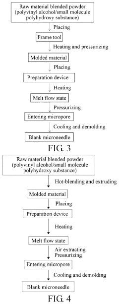 Microneedle arrays manufactured through microinjection molding provide minimally invasive transdermal drug delivery solutions. These arrays consist of numerous microscopic needles that can penetrate the skin's outer layer without reaching pain receptors, allowing for painless drug administration. The microinjection molding process enables precise control over needle dimensions, sharpness, and material properties, resulting in effective delivery systems for various pharmaceutical compounds.Expand Specific Solutions03 Biodegradable polymers for controlled release applications