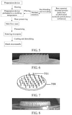 Microinjection molding of biodegradable polymers creates pharmaceutical delivery systems with controlled release properties. These systems can be designed to release drugs at specific rates over predetermined periods, enhancing therapeutic efficacy while reducing side effects. The process allows for the incorporation of active pharmaceutical ingredients directly into the polymer matrix during manufacturing, creating monolithic drug delivery devices with tailored release profiles.Expand Specific Solutions04 Microfluidic devices for precise drug administration
