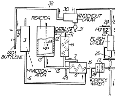 - The process involves polymerizing isobutylene with metal halide catalysts, specifically Friedel-Crafts type catalysts, in the presence of 25-95% inert solvent, such as alkane hydrocarbons, to control temperature and prevent fouling, increasing molecular weight and shear stability, while maintaining reactor temperature.