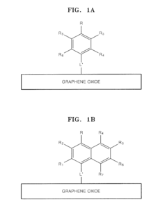 Reduced graphene oxide features tunable surface chemistry with residual oxygen-containing functional groups that can be leveraged for further functionalization. The reduction process affects hydrophilicity/hydrophobicity, with more reduced forms typically becoming more hydrophobic. rGO maintains reactive sites that allow for chemical modification and attachment of various functional groups, enabling customization for specific applications. These surface properties make rGO valuable for applications in catalysis, filtration membranes, and chemical sensing.Expand Specific Solutions05 Applications of reduced graphene oxide based on its properties