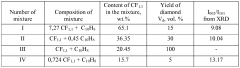 - A method involving the thermal decomposition of fluorinated precursors with hydrocarbons in a reactor under controlled pressure and temperature conditions, without catalysts, to form diamond materials, which can include doped diamonds, utilizing a binary system of fluorinated compounds and hydrocarbons like fluorographite and naphthalene to reduce synthesis temperatures and enhance purity.