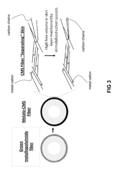Precise control of pore size and distribution is crucial for achieving high selectivity in hollow fiber membranes. Manufacturing techniques that enable uniform pore formation, such as phase inversion under controlled conditions, thermally induced phase separation, or stretching methods, can significantly enhance separation performance. Optimizing the pore structure creates well-defined molecular sieving effects that allow for selective passage based on molecular size and shape, improving the membrane's ability to separate similar compounds.Expand Specific Solutions04 Multi-layer and composite membrane structures