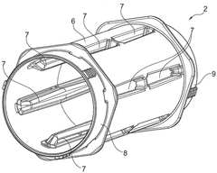 - Module design to minimize fiber stress: Optimized module design can significantly reduce stress on hollow fibers, thereby minimizing breakage. Key design elements include improved flow distribution, prevention of fiber movement, and elimination of stress concentration points. Proper potting techniques, strategic fiber packing density, and enhanced header designs can protect fibers from mechanical damage. Additionally, shock-absorbing components and flexible mounting systems can mitigate the effects of pressure surges and vibration.