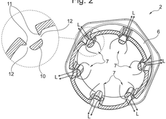 Technical Solution: Toray has developed advanced hollow fiber membrane technology with multi-layer structure design that significantly enhances pressure cycling and backwash resistance. Their PVDF (polyvinylidene fluoride) hollow fiber membranes incorporate a unique asymmetric structure with a dense outer skin layer and porous supporting layer that distributes stress evenly during pressure fluctuations. Toray's proprietary spinning technique creates fibers with optimized wall thickness and porosity gradients, allowing for controlled elasticity and flexibility. Their membranes feature specialized end-sealing technology that reinforces the vulnerable fiber-potting interface, preventing breakage at connection points during pressure cycling. Additionally, Toray has implemented surface modification treatments that enhance chemical resistance during aggressive cleaning cycles while maintaining mechanical integrity. The company's PVDF membranes demonstrate exceptional durability, withstanding over 100,000 pressure cycling events in accelerated testing protocols, significantly outperforming industry standards.