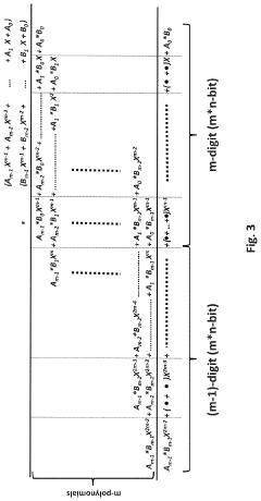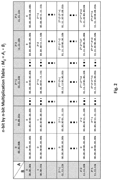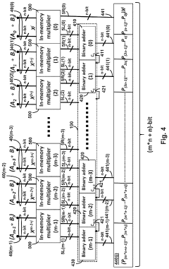 - Implementing multiple-digit binary in-memory multiplication devices that utilize memory arrays to store base-2n multiplication tables, reducing operational steps by using digit-by-digit or parallel operations, and employing Perpetual Digital Perceptron (PDP) structures like CROM and RROM arrays to perform arithmetic computations directly, thereby minimizing data transport and enhancing computing efficiency.