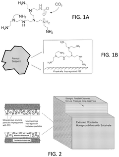 Amine-functionalized materials represent a significant class of solid sorbents for CO2 capture due to their strong chemical affinity for CO2. These materials typically consist of amines grafted onto porous supports such as silica, alumina, or polymeric substrates. The chemical stability of these sorbents can be enhanced by selecting appropriate amine types, optimizing loading density, and using stabilizing additives. Proper design can minimize amine leaching and degradation during multiple adsorption-desorption cycles, ensuring long-term performance in CO2 capture applications.Expand Specific Solutions03 Zeolite-based CO2 sorbents