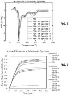- Development of substituted epoxide modified sorbents with a CO2-philic phase formed by reacting amines with substituted epoxides, creating a modified amine polymer that enhances CO2 binding capacity and resistance to oxidation.