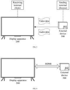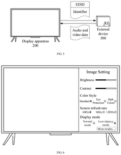 - The display apparatus detects the current audio output mode and adjusts sound effect processing accordingly, switching between a faster first type of processing in low-latency mode and a slower second type in normal mode, modifying data formats and identifiers to optimize audio processing time and synchronize audio with video.