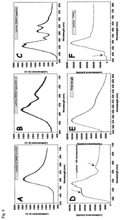 Various methods are employed to enhance the efficiency of luminol chemiluminescence. These include optimizing reaction conditions, using catalysts, and incorporating additives that amplify the light emission. Researchers focus on improving the sensitivity and intensity of the luminol reaction for applications in forensic science, analytical chemistry, and biosensing.- Enhancing luminol chemiluminescence efficiency: Various methods are employed to enhance the efficiency of luminol chemiluminescence. These include optimizing reaction conditions, using catalysts, and incorporating additives that amplify the light emission. Researchers focus on improving the sensitivity and intensity of the luminol reaction for applications in forensic science, analytical chemistry, and biosensing.