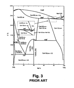 Surface treatments and interface engineering techniques are employed to enhance the durability of ceramic thermal barrier coatings. These include laser surface modification, grit blasting, chemical treatments, and the creation of engineered interfaces between coating layers. Such treatments improve adhesion, reduce interfacial stresses, and enhance resistance to spallation and delamination, thereby extending the service life of the thermal barrier coating system under extreme operating conditions.Expand Specific Solutions05 Additives and dopants for enhanced thermal stability