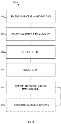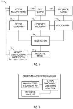 - A predictive model is trained using optical tomography and computed tomography data to identify manufacturing anomalies and defects in a test coupon, enabling in-process monitoring and proactive adjustments to the manufacturing process.