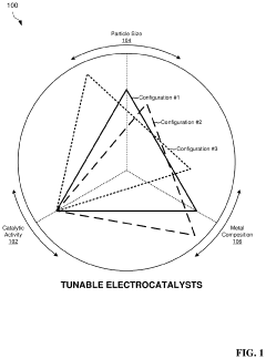 Strengths: Exceptional selectivity for complex reactions; adaptive performance across varying reaction conditions; reduced energy consumption through optimized electron transfer pathways. Weaknesses: Sensitivity to certain catalyst poisons that can disrupt the neuromorphic properties; challenges in scaling production while maintaining precise nanostructural control; higher manufacturing complexity compared to conventional catalysts.