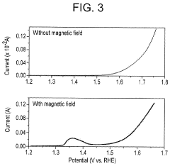 - Applying a small constant external magnetic field, greater than the Earth's magnetic field but ≤200 mT, to OER catalysts with a non-zero Berry phase, such as metals like Co, Cr, Mn, and Ni, or their alloys and compounds, to increase catalytic efficiency by aligning electron spins and modifying the Berry phase.