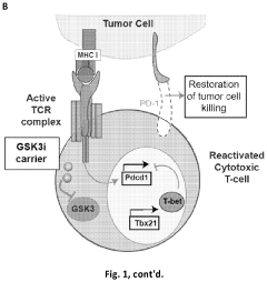 - Development of nanoparticle drug delivery vehicles encapsulating GSK3 inhibitors, coated with a lipid bilayer to enhance delivery and reduce toxicity, allowing for targeted and effective inhibition of PD-1 expression in cancer cells.