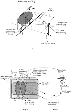 Technical Solution: Signify (formerly Philips Lighting) has developed advanced UV-C based photocatalytic disinfection systems specifically designed for healthcare environments. Their technology combines UV-C light with titanium dioxide (TiO2) photocatalysts to create powerful oxidizing agents that destroy bacteria, viruses, and other pathogens on surfaces and in air. The system works by activating the photocatalyst with specific wavelengths of UV light, generating reactive oxygen species (ROS) including hydroxyl radicals and hydrogen peroxide that break down organic contaminants and microbial cell structures. Signify's solutions include both fixed installation systems for operating rooms and patient rooms, as well as mobile units that can be deployed for targeted disinfection. Their systems incorporate safety features that prevent human exposure to UV radiation while maximizing disinfection efficacy. Clinical studies have demonstrated up to 99.9999% reduction in pathogens including MRSA, C. difficile, and coronaviruses in hospital settings when using their photocatalytic technology.
