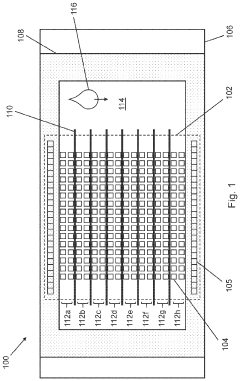 Technical Solution: ARKRAY has pioneered the development of point-of-care glucose monitoring systems utilizing proprietary enzyme electrode technology. Their flagship devices employ a unique multi-layer test strip design that separates plasma from whole blood, eliminating interference from cellular components. ARKRAY's systems incorporate automatic environmental compensation algorithms that adjust for temperature, humidity, and altitude variations to maintain measurement accuracy. The company has developed specialized Gold-Drop technology that precisely controls the deposition of enzyme and mediator compounds on test strips, ensuring consistent electron transfer and signal generation. Their latest innovations include devices with automatic coding, strip ejection mechanisms for hygienic handling, and specialized testing modes for alternative site testing. ARKRAY has also introduced connectivity solutions that enable seamless data transfer to electronic health records and diabetes management applications[2][5].